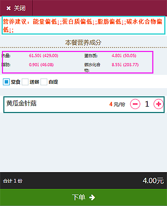 業(yè)內最先進的基于移動互聯(lián)網(wǎng)的智能營養(yǎng)配餐系統(tǒng),配合滿客寶智慧食堂訂餐和食堂管理系統(tǒng),為食堂就餐者量身定制專業(yè)的營養(yǎng)指導。