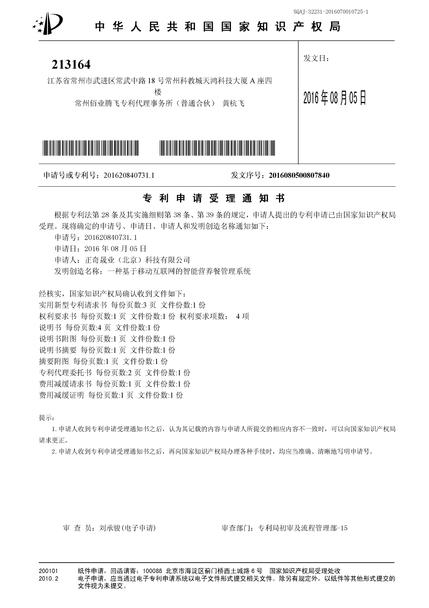 為給廣大用戶帶來更加優(yōu)質的用戶體驗,響應國家號召保護自主知識產(chǎn)權,近期我公司就滿客寶智慧食堂相關產(chǎn)品提出申請國家專利,6項專利申請已獲得受理并通過申請,特此告知。我們會繼續(xù)精益求精,不斷提升用戶滿意度,持續(xù)為用戶提供優(yōu)質的服務,是我公司不變的發(fā)展宗旨。