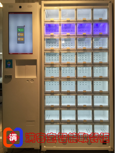 滿客寶智能取餐柜外觀類似超市儲物柜,智能恒溫控制,配合滿客寶智慧食堂使用,用于存放用戶預訂的食品,用戶憑借取餐碼或二維碼到到餐柜自取食品,即刻用餐。
