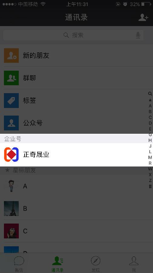 正奇晟業(yè)微信企業(yè)號關(guān)注方法: