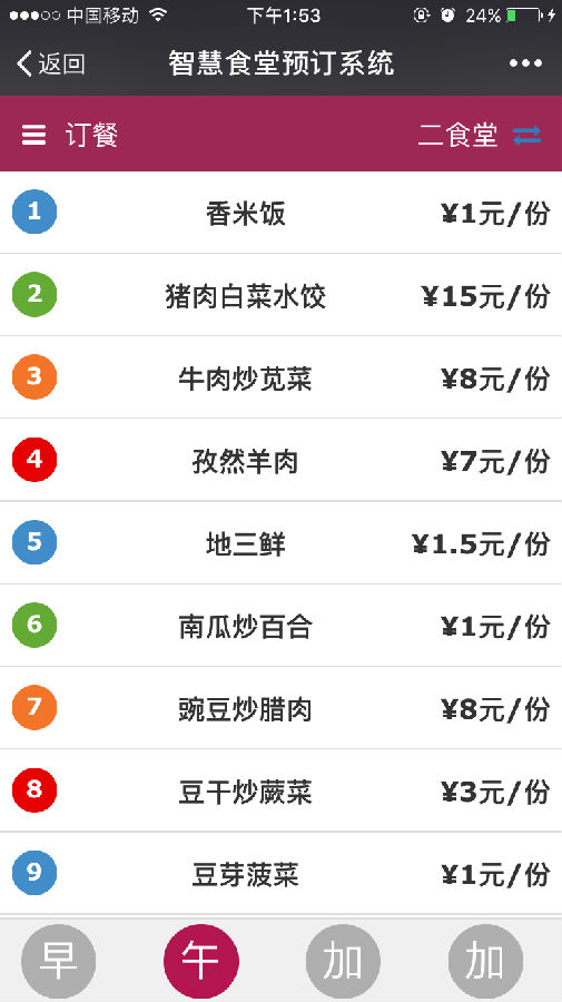 正奇晟業(yè)微信企業(yè)號訂餐功能界面展示與介紹:
