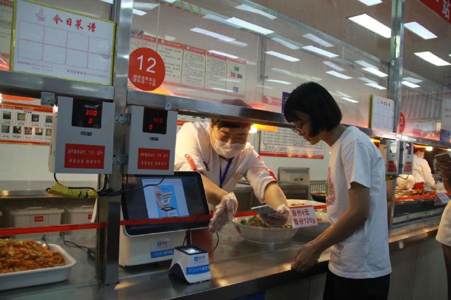 天津商業(yè)大學(xué)榮幸成為全國(guó)首個(gè)把校園卡“裝進(jìn)”手機(jī)的“無(wú)現(xiàn)金校園”。早上,走進(jìn)食堂,發(fā)現(xiàn)可以使用支付寶中的電子校園卡付款,一些同學(xué)就掏出手機(jī)“嘗鮮”。