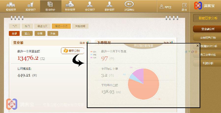 隨著餐飲O2O用戶群體的增長(zhǎng),還可以通過(guò)對(duì)消費(fèi)群體的細(xì)分,幫助商家有針對(duì)性的提供菜品和服務(wù),如專為女士提供的女士菜和甜點(diǎn)、為老人孩子提供的營(yíng)養(yǎng)餐,而通過(guò)對(duì)消費(fèi)能力的數(shù)據(jù)分析,可以為白領(lǐng)群體提供精致中餐,為學(xué)生提供健腦成長(zhǎng)餐等。這些在傳統(tǒng)餐廳經(jīng)營(yíng)模式下很難實(shí)現(xiàn)的大數(shù)據(jù)管理,如今借助滿客寶這樣的管理工具即可簡(jiǎn)單實(shí)現(xiàn),只有與時(shí)俱進(jìn)、精于管理、專注顧客需求的餐廳才能吸引更多的新顧客,留下更多的忠實(shí)老顧客。