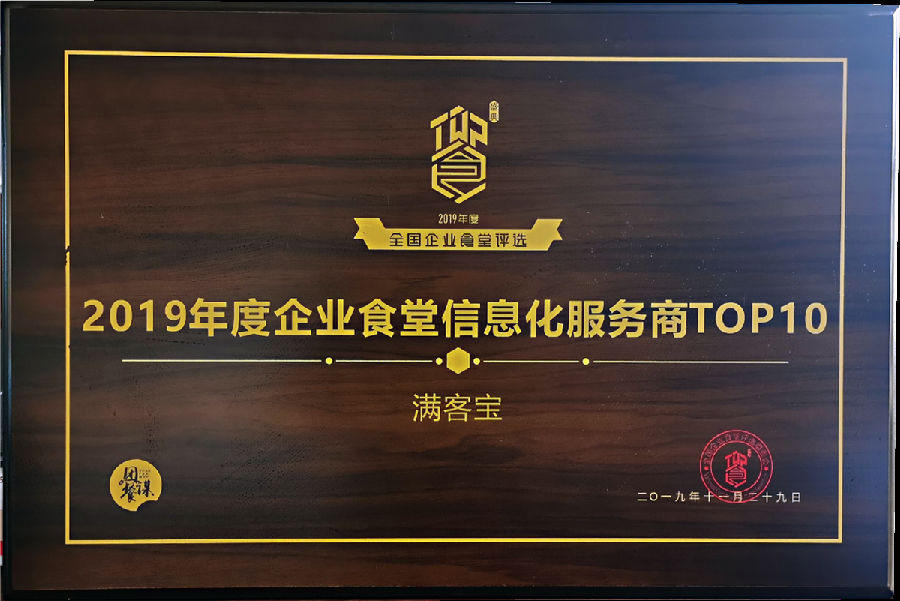 經(jīng)過激烈角逐,滿客寶榮獲了【2019企業(yè)食堂信息化服務(wù)商TOP10】榮譽稱號!