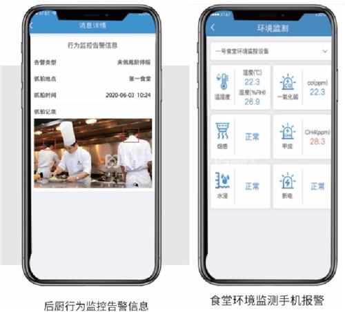 食品安全監(jiān)管可在不同的食堂運營環(huán)節(jié),通過農(nóng)殘檢測、菜品溯源、明廚亮灶、食品留樣等功能,嚴格監(jiān)督食堂食品安全。食堂環(huán)境監(jiān)測是在后廚、出入口和主要區(qū)域視頻全覆蓋,24小時實時監(jiān)測食堂溫濕度、一氧化碳、燃氣泄露等信息,而在其中監(jiān)管人員的作用,就是通過移動端隨時隨地對食堂進行可視化監(jiān)管。