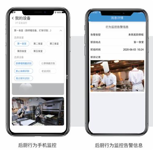 在此基礎上,滿客寶依托AI技術研發(fā)智能AI后廚行為監(jiān)測,以99%的準確率對廚師進行工帽識別、違規(guī)吸煙識別、口罩佩戴識別,如監(jiān)測到違規(guī)情況可及時向管理人員發(fā)送預警、告警信息,保障后廚操作的完全規(guī)范透明。