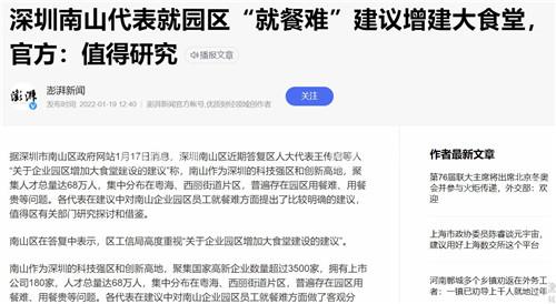 近日,深圳南山代表就園區(qū)“就餐難”建議增建大食堂,目前官方回應是“值得研究”,據(jù)悉,南山作為深圳的科技強區(qū)和創(chuàng)新高地,聚集人才總量達68萬人,普遍存在園區(qū)用餐難、用餐貴等問題。要滿足這么多打工人的就餐,在建設大食堂的基礎上,還要建立智慧食堂管理,以保證就餐效率。