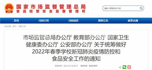 2月18日,市場監(jiān)管總局辦公廳聯(lián)合教育部辦公廳、國家衛(wèi)生健康委辦公廳、公安部辦公廳印發(fā)《關(guān)于統(tǒng)籌做好2022年春季學(xué)校新冠肺炎疫情防控和食品安全工作的通知》,以下簡稱《通知》,要求各地市場監(jiān)管、教育、衛(wèi)生健康、公安等部門要按照國務(wù)院聯(lián)防聯(lián)控機制要求,基于當(dāng)前國內(nèi)新冠肺炎疫情防控形勢,做好2022年春季學(xué)期學(xué)校常態(tài)化疫情防控和食品安全管理工作?!锻ㄖ钒l(fā)布以后,多地多學(xué)校按照要求,開展校園食品安全檢查,守護好“開學(xué)第一餐”。
