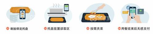 1、綁定托盤:就餐者拿取餐盤并放在讀盤器上,刷臉完成餐盤與賬戶的綁定