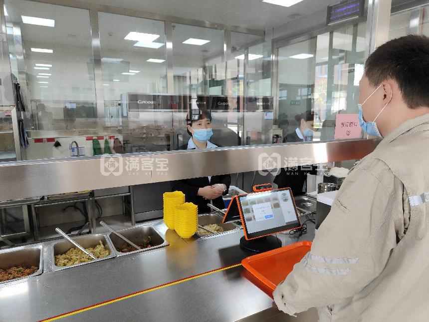 1、滿客寶智慧食堂在對檔口場景改造中,引入人臉識別支付,員工選餐完后,對準屏幕刷臉、確認個人及付款信息無誤后,從窗口直接取餐,從選餐到取餐整個過程只需幾十秒鐘,十分便捷