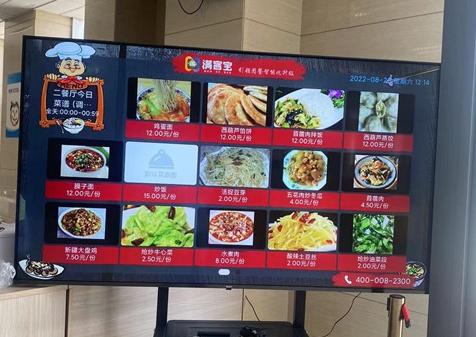 3、食堂中的菜譜大屏也是員工最為滿意的改革之一,一進入食堂,就可以看到今日菜譜,大屏輪播屏幕也會顯示食堂最新通知及消息,讓員工就餐更加順暢。
