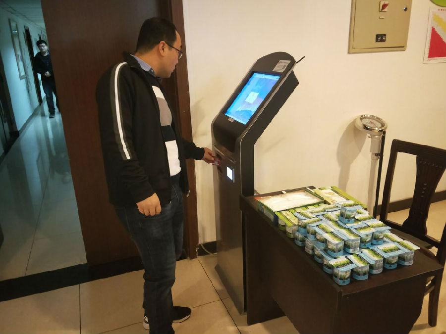 唐山市稅務局食堂使用版本為高級訂餐版,設備為兩臺智能落地式觸摸屏自助取票機、一臺二維碼識讀器,使用小票和二維碼進行領餐。