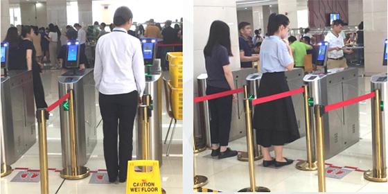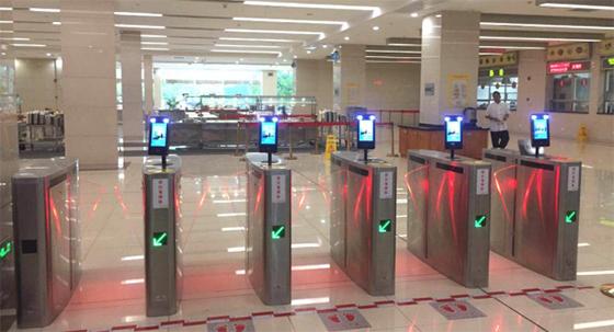 在食堂門口放置13個智能閘機通道,食堂就餐人員提前進行人臉錄入,通過智能閘機時刷臉完成身份確認,完成取餐就餐。