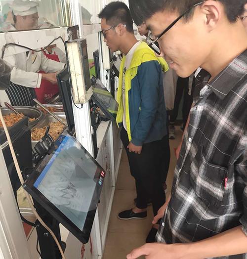 學生在學校食堂選擇完菜品后,只要對準打飯窗口一臺帶有人臉識別功能的“刷臉器”,用餐人姓名、套餐類型、用餐金額自動出現(xiàn)在屏幕上,點確認即完成付款。