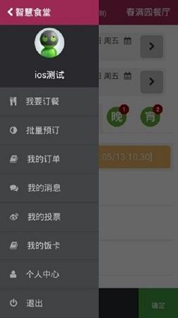 就餐者通過手機下載和登錄樂訂餐APP后,進入到用戶界面,可查看菜譜,在允許的日期范圍內(nèi)選餐別,選餐,訂餐等操作,還可以進行批量訂餐操作。