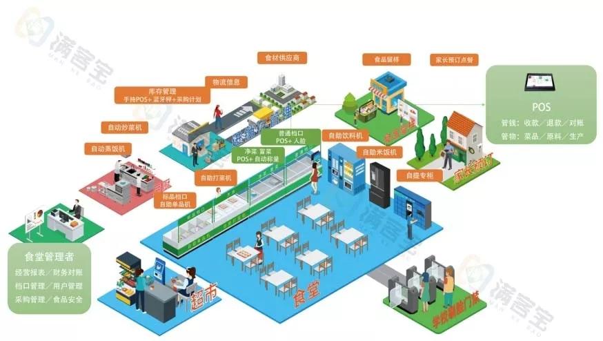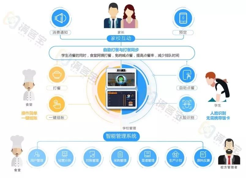食堂:免計算,一鍵快速結(jié)帳;免吶喊,安靜高效配餐;獲取數(shù)據(jù),精準備餐。