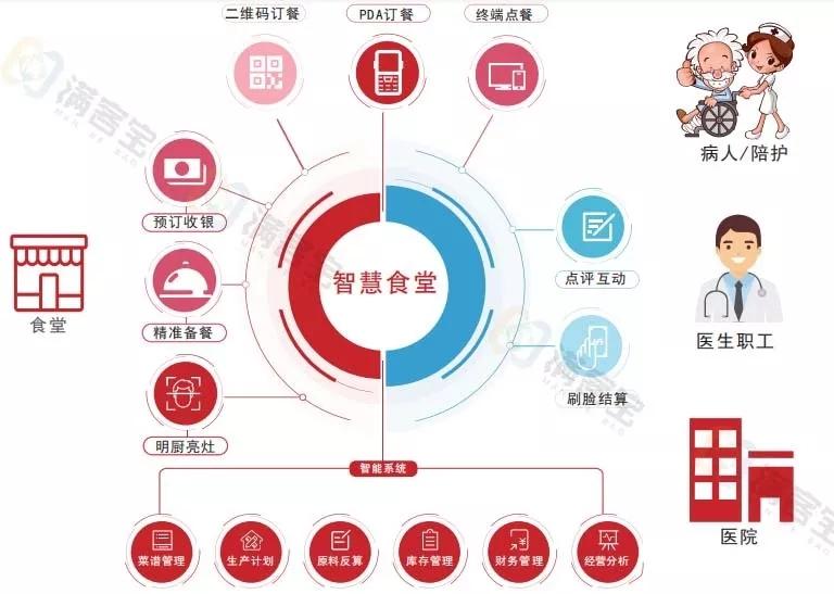 醫(yī)院:多食堂/檔口統(tǒng)一管理;財務(wù)準確統(tǒng)計與對賬;進銷存管理系統(tǒng);隨時把控食品安全;掌握病人信息定制營養(yǎng)餐。