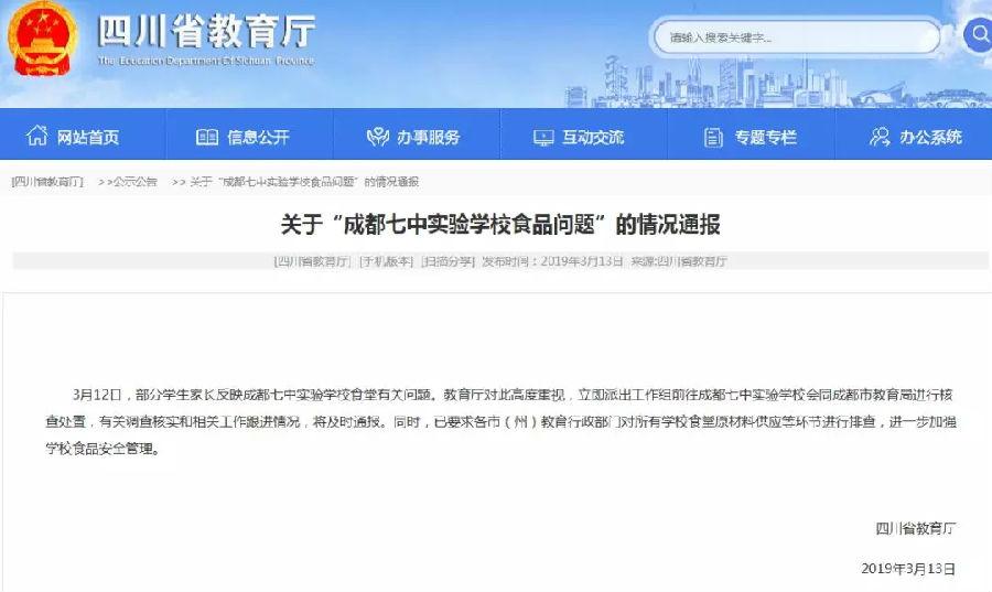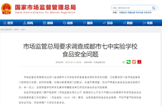 市場監(jiān)管總局要求調(diào)查成都市七中實驗學(xué)校食品安全問題 全面排查校園食品安全風(fēng)險