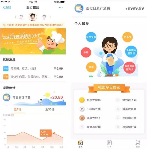 作為家長(zhǎng)方,必然最關(guān)心孩子在學(xué)校吃得好不好、營(yíng)養(yǎng)是否達(dá)標(biāo)、飯菜衛(wèi)不衛(wèi)生的問(wèn)題。而智慧食堂系統(tǒng)直接和家長(zhǎng)的手機(jī)支付寶綁定使用,通過(guò)人臉采集&互動(dòng)追蹤的功能,能幫助孩子預(yù)定點(diǎn)餐、及時(shí)了解孩子點(diǎn)餐詳情、追蹤孩子的營(yíng)養(yǎng)攝入情況,還能分析出孩子最愛(ài)吃的菜品排行,簡(jiǎn)直就是家長(zhǎng)對(duì)孩子們舌尖上的“監(jiān)管神器”!