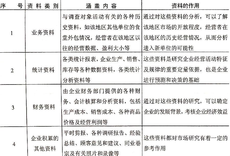 內(nèi)部資料的收集主要是收集調(diào)查對(duì)象活動(dòng)的各種記錄,主要包括以下4種,見(jiàn)表2-1