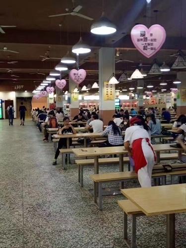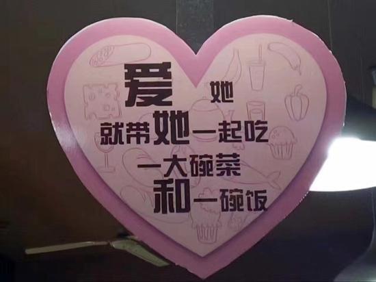 這些懸掛在食堂頂部的粉色心形吊牌,為5.20營(yíng)造出了不一樣的氛圍。有同學(xué)感嘆:“好浪漫啊,很喜歡和男朋友呆在這種環(huán)境下?!钡袉紊淼耐瑢W(xué)稱“太虐心了”。