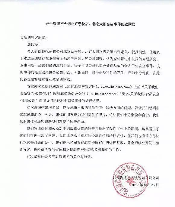 面對(duì)此事件,滿(mǎn)滿(mǎn)只想說(shuō)食品安全無(wú)小事,豈是你一個(gè)危機(jī)公關(guān)和一張紙就可以解決的,而輿論場(chǎng)上,關(guān)于“危機(jī)”的討論,完全被公關(guān)所置換。我們應(yīng)該認(rèn)清一個(gè)事實(shí),海底撈這次觸碰的是中國(guó)食品安全的底線(xiàn),公關(guān)不是萬(wàn)能的,也更不應(yīng)該蒙蔽公眾的眼睛。