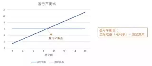 盈虧平衡點(diǎn)是餐廳開(kāi)始盈利的臨界點(diǎn),利用現(xiàn)金流算出的臨界點(diǎn)能保證餐廳生存,卻不能讓餐廳真正盈利,所以當(dāng)餐廳成功越過(guò)了生命線,我們就要向二級(jí)目標(biāo)進(jìn)發(fā),這就是盈虧平衡點(diǎn)。