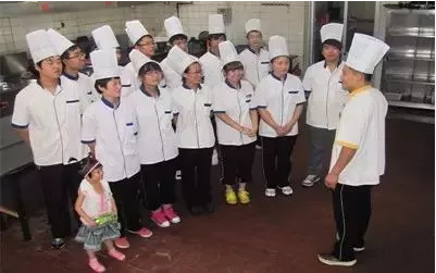 我:現(xiàn)在,大家跟我來喊一遍——學(xué)廚先立德,做菜先做人!