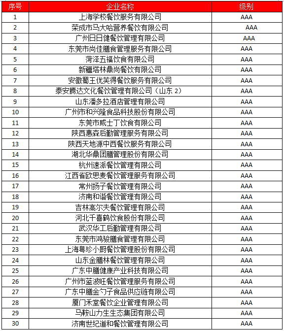 【獨家整理】全國餐飲行業(yè)企業(yè)信用等級評價(首批團餐企業(yè))