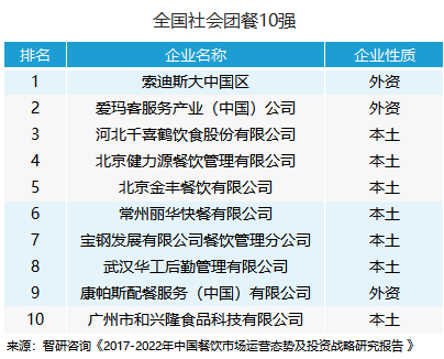 和國際團(tuán)餐巨頭相比,中國團(tuán)餐業(yè)還有很大的提升空間。智研咨詢相關(guān)報(bào)告指出,國際團(tuán)餐巨頭從90年代開始陸續(xù)進(jìn)軍中國市場,在競爭中處于優(yōu)勢地位。目前,國際排名前三的團(tuán)餐企業(yè)分別是英國的康帕斯、法國的索迪斯和美國的愛瑪客,其他企業(yè)與前三名的差距較大。自1994 年索迪斯(SODEX)在上海設(shè)立辦事處以來,國際團(tuán)餐巨頭在中國團(tuán)餐市場的拓展步伐不斷加快。目前,三大團(tuán)餐巨頭在中國團(tuán)餐市場居于領(lǐng)先地位,服務(wù)對象以跨國企業(yè)為主,并提供其他后勤和金融服務(wù)。2008年北京奧運(yùn)會團(tuán)餐的承辦商就由美國500強(qiáng)企業(yè)愛瑪客一舉拿下,可見中國本土企業(yè)和國際化水平還有一定差距。