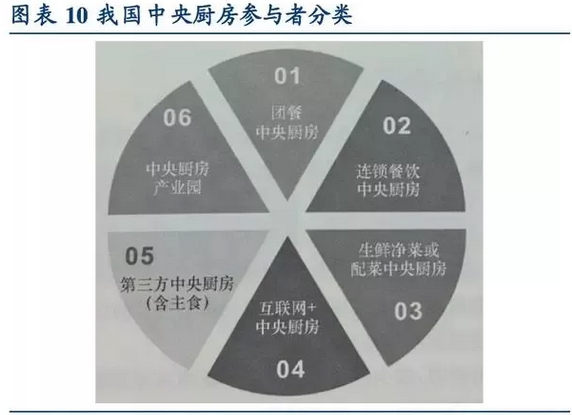 舶來引入的中央廚房概念,在國外通常是由連鎖餐飲企業(yè)建立的、直接為餐飲企業(yè)服務(wù)的。但我國行業(yè)發(fā)展雖較晚,但隨著市場競爭環(huán)境的快速變化,中央廚房的經(jīng)營早已不局限于餐飲,市場參與者更加多樣化,來自餐飲、零售、互聯(lián)網(wǎng)等行業(yè)不同背景的各方紛紛著手建設(shè)中央廚房。經(jīng)梳理,目前我國中央廚房參與者大致分為以下幾類: