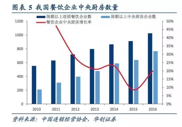 據(jù)中國連鎖經(jīng)營協(xié)會數(shù)據(jù),2016年我國限額以上連鎖餐飲企業(yè)數(shù)912家,中央廚房普及率達到70%,即擁有央廚的限額以上餐飲連鎖品牌為765家。