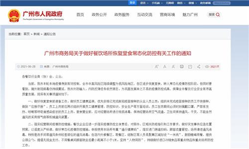 6月28日,廣州市商務(wù)局發(fā)布《關(guān)于做好餐飲場(chǎng)所恢復(fù)堂食常態(tài)化防控有關(guān)工作的通知》,要求餐飲企業(yè)應(yīng)進(jìn)一步落實(shí)疫情防控主體責(zé)任,對(duì)照市、區(qū)相關(guān)防疫指引和工作要求,做好突發(fā)事件應(yīng)急處置預(yù)案,以適度從嚴(yán)標(biāo)準(zhǔn),做好常態(tài)化疫情防控措施。
