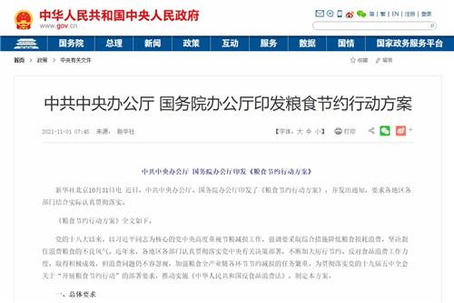 近日,中共中央辦公廳、國務(wù)院辦公廳印發(fā)了《糧食節(jié)約行動方案》(以下簡稱《方案》),并發(fā)出通知,要求各地區(qū)各部門結(jié)合實際認真貫徹落實。