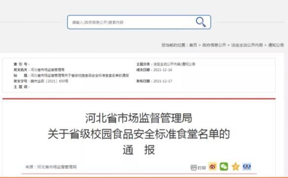 日前,河北省市場監(jiān)管局公布2021年度省級校園食品安全標準食堂名單,全省共有455家食堂上榜,旨在全面提升學校食堂食品安全水平,充分發(fā)揮省級標準食堂的示范引領作用。