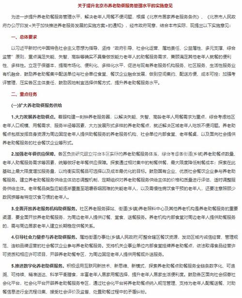 近期,《關(guān)于提升北京市養(yǎng)老助餐服務(wù)管理水平的實施意見》發(fā)布,其中提到:推進數(shù)字化養(yǎng)老助餐服務(wù),積極運用互聯(lián)網(wǎng)新技術(shù)、新思維、新模式,探索養(yǎng)老助餐點助餐服務(wù)全鏈條數(shù)字化、可追溯、 可持續(xù)、精準送達、科學平衡膳食,豐富老年人居家用餐選擇, 提升老年人居家生活便利度。