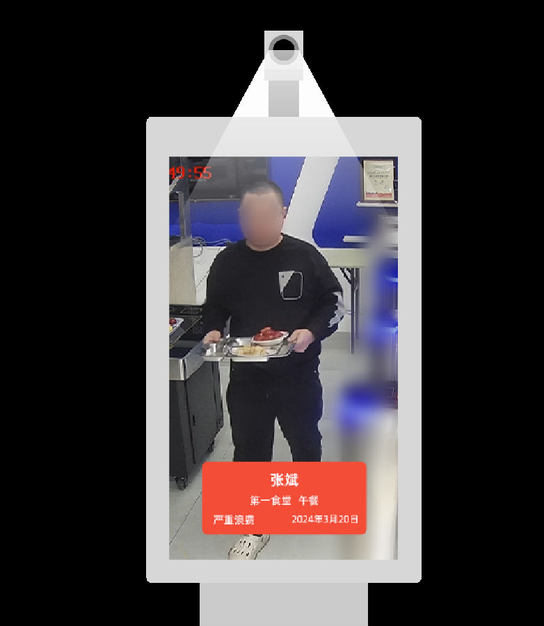 1、智能餐余監(jiān)控一體機(jī):就餐用戶回收餐余時(shí)在設(shè)備處識(shí)別,精準(zhǔn)讀取用戶信息、所剩餐余圖片并顯示浪費(fèi)情況,提醒就餐人員。