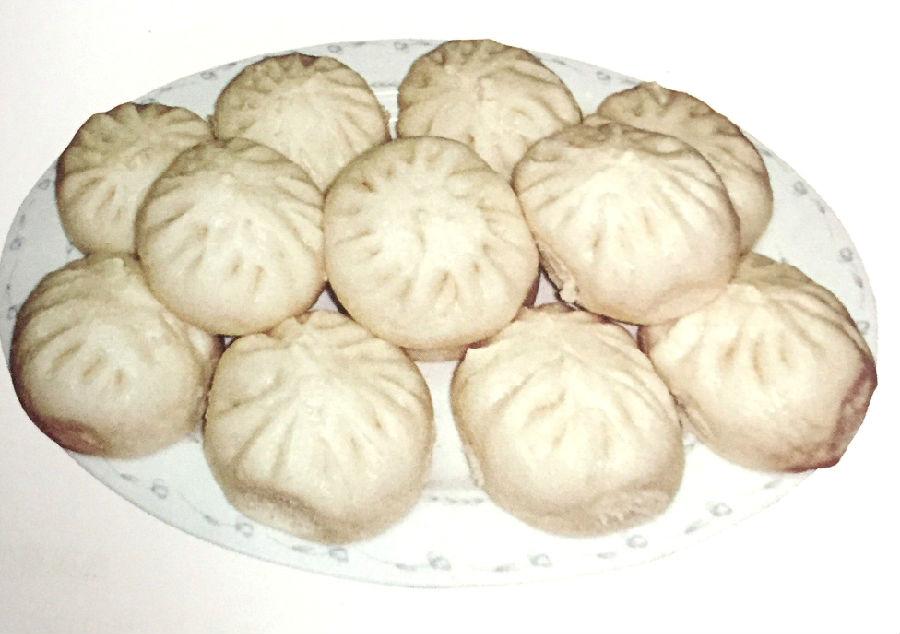 取上等富強粉(古船面粉)配以安琪發(fā)酵粉按1:0.02配比,然后與溫水l:0.6比例和面制成饅頭面坯,每個面坯2.8兩,再用40。C餳箱進行餳發(fā),待饅頭而坯充分發(fā)起后,上蒸箱旺火蒸28min即可,剛蒸熟的饅頭分量應在2.8-3兩之間,售價根據(jù)而粉進價如I發(fā)酵粉等輔料核算而定。