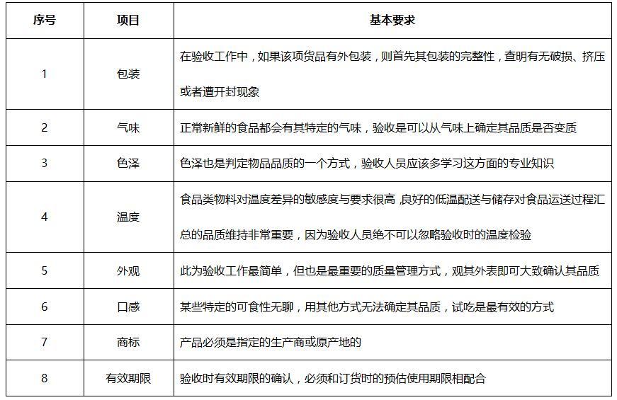 驗收是對采購進庫材料、質量和數(shù)量的檢查把關工作,必須認真對待。對每件無心都要對照購貨單核實復秤,發(fā)現(xiàn)少數(shù)或者質量不合要求的,應作好記錄并及時告知采購員或送貨員要求補足或者更換;對腐爛變質的食品原料堅決拒收。