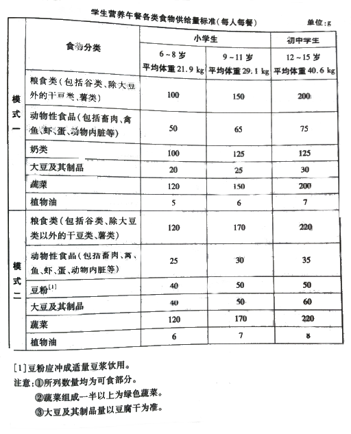 2、學(xué)生營養(yǎng)午餐各類食物的供給量標(biāo)準(zhǔn)