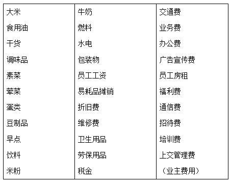 下表中列出了食堂經(jīng)營(yíng)過(guò)程中發(fā)生的主要成本費(fèi)用。