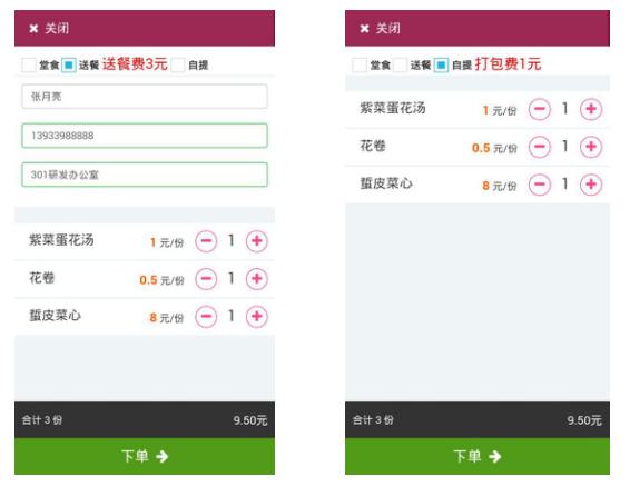 為方便特殊工種的就餐需要,智慧食堂管理系統(tǒng)還支持自提派送功能。例如醫(yī)院的職工離不開崗位或者因為手術(shù)等需要晚些去食堂就餐,就可以在訂餐之后可以選擇自提或派送,食堂提供打包和派送服務(wù),不僅提升了食堂的服務(wù)質(zhì)量,也方便了職工就餐。