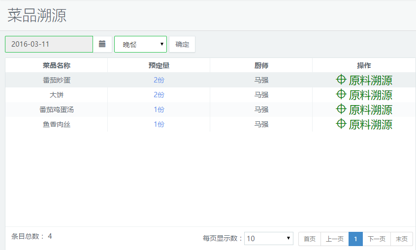 系統(tǒng)可追溯菜品的售賣對象,制作廚師,原料供應(yīng)商等。
