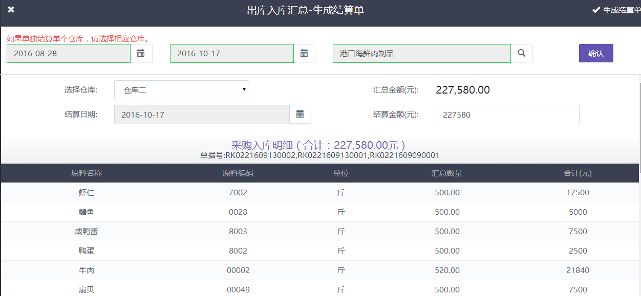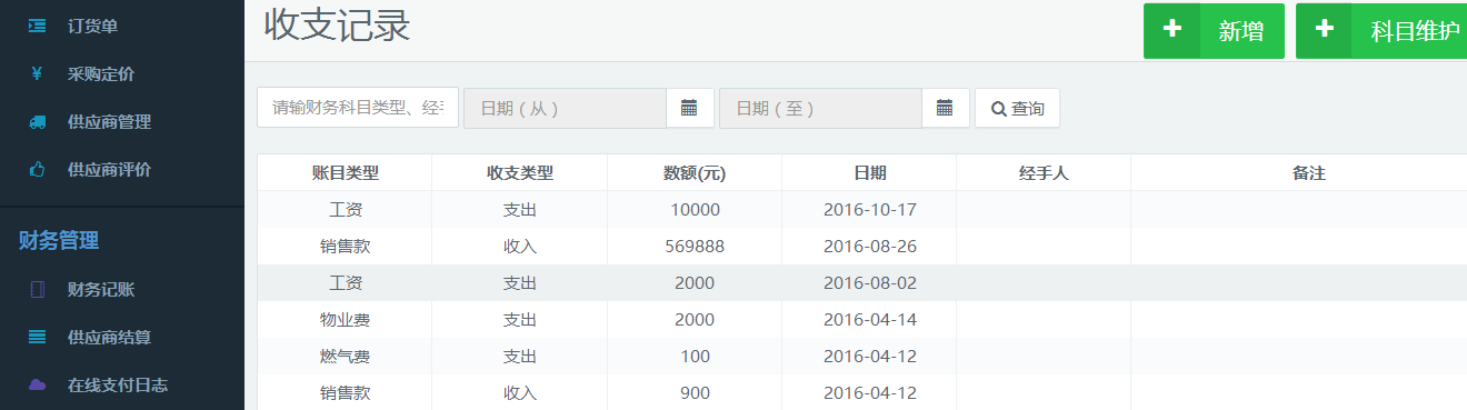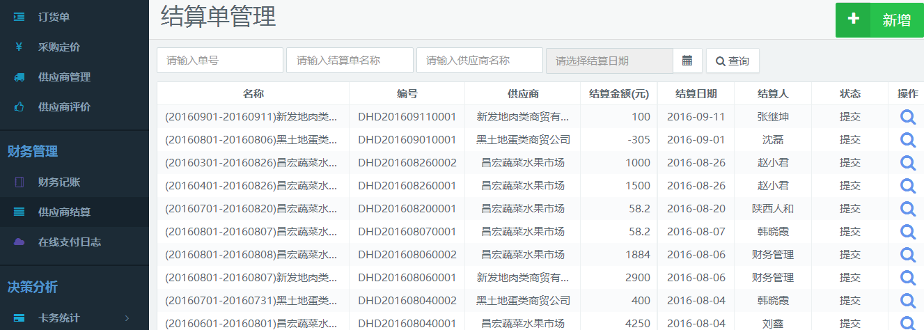 系統(tǒng)可以選擇供應(yīng)商結(jié)算周期,財務(wù)人員在系統(tǒng)中選擇相應(yīng)的時間段和供應(yīng)商,進(jìn)行收支統(tǒng)計。通過系統(tǒng)還可以看到出庫、入庫的明細(xì)信息,方便財務(wù)人員進(jìn)行憑證核對,避免人工操作造成的財務(wù)工作失誤以及財務(wù)漏洞。