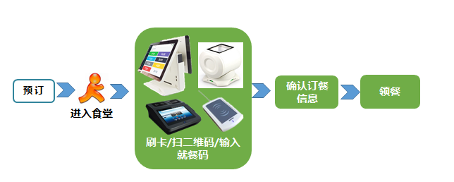 就餐者通過(guò)滿客可以實(shí)現(xiàn)的訂餐方式訂餐后,可以攜飯卡、就餐碼、訂餐二維碼到預(yù)裝好滿客寶智慧食堂管理系統(tǒng)的智能售飯終端、智能取餐柜、食堂窗口的刷卡器處去刷卡或輸入就餐碼或掃描訂餐二維碼進(jìn)行領(lǐng)餐,取代傳統(tǒng)食堂的紙幣、紙卡、飯菜票等領(lǐng)餐方式,使食堂實(shí)現(xiàn)了初步的自動(dòng)化管理,讓就餐者領(lǐng)餐更加方便。