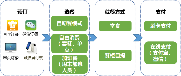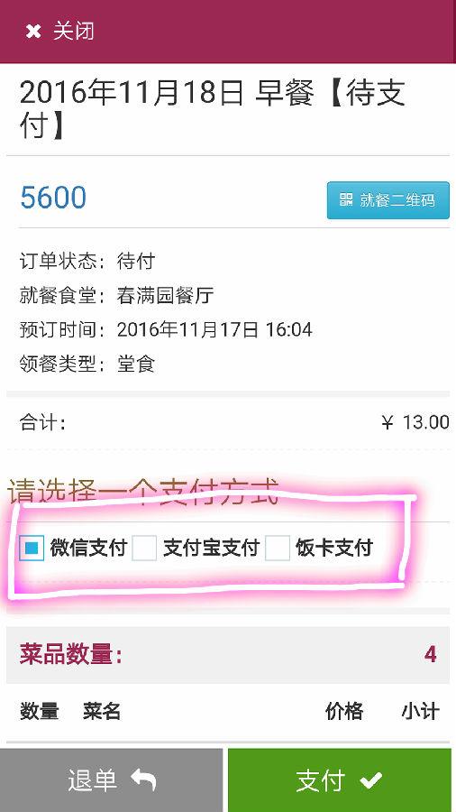 通過多方式預(yù)定下單后可以選擇不提前支付和在線支付的方式。在線支付方式包括微信支付、支付寶支付、在線飯卡支付等方式,可以滿足不同的需求,方便快捷。