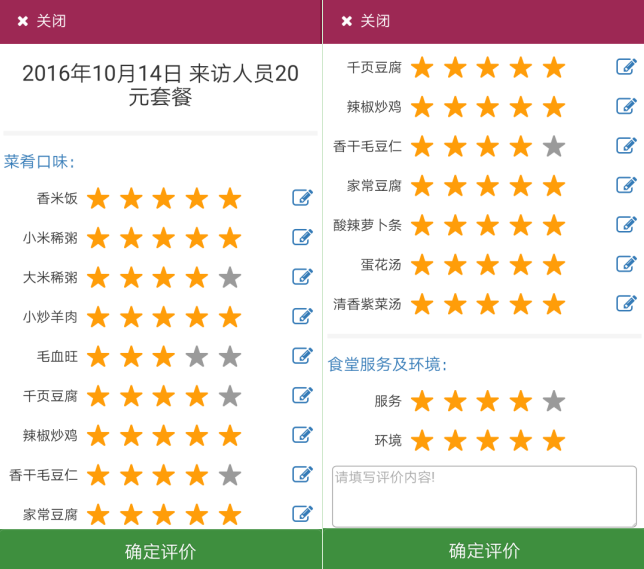單位食堂管理軟件支持手機(jī)APP或微信等終端進(jìn)行在線點(diǎn)評(píng),點(diǎn)評(píng)內(nèi)容包括菜品口味,用餐環(huán)境,食堂服務(wù)等多個(gè)維度,員工可以為食堂做的飯菜點(diǎn)贊或者差評(píng),后臺(tái)可自動(dòng)匯總點(diǎn)評(píng)數(shù)據(jù),指導(dǎo)食堂進(jìn)行改進(jìn),形成良性循環(huán),讓員工更愿意在食堂就餐。