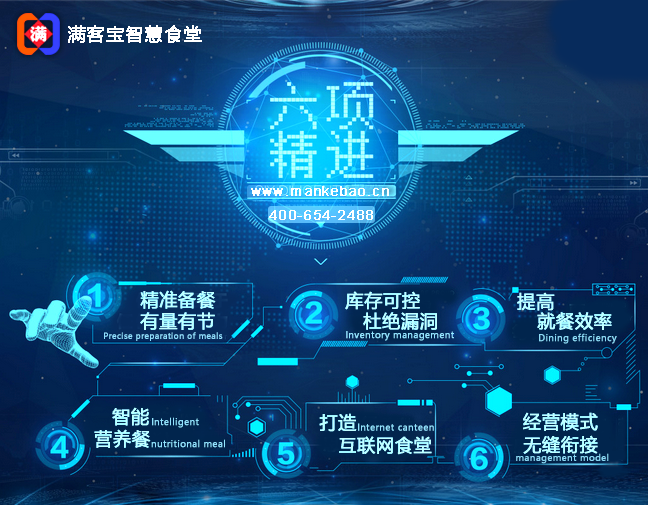 滿客寶智慧食堂管理系統(tǒng)專注于高校、企業(yè)、工廠、機關(guān)事業(yè)單位生活服務(wù)領(lǐng)域,為就餐者提供訂餐、點菜、等一站式餐飲服務(wù)。無論是就餐效率、擁擠排隊還是食品安全的煩惱一掃而光。