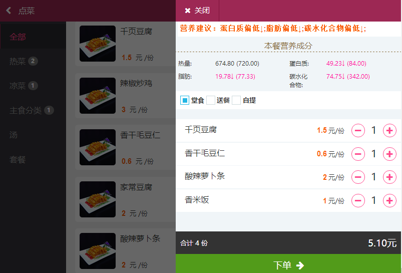 主動(dòng)消費(fèi)模式的在線食堂菜譜