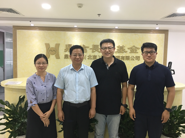 香橙互動(dòng)創(chuàng)始人劉正(右2)、聯(lián)合創(chuàng)始人艾揚(yáng)(右1)、鼎信長城集團(tuán)董事長章華(左2)、董事總經(jīng)理孫東霞(左1)合影